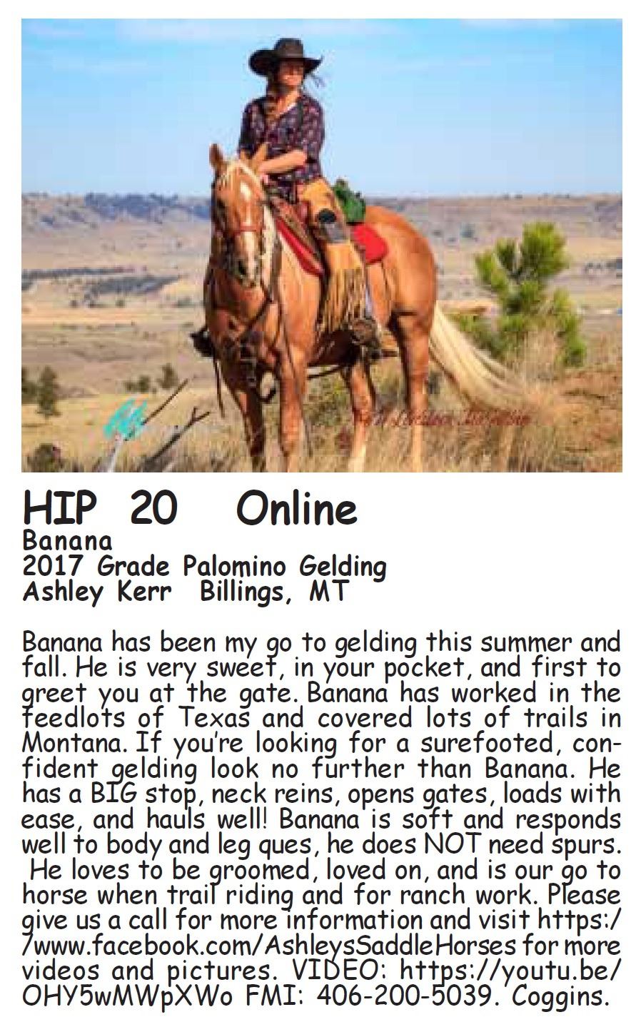 ALL OCTOBER 27-28 SALE HORSES WILL BE AUCTIONED LIVE AT BILLINGS LIVESTOCK – Internet bidding also available for Online/ ShowCase Internet Sale Session horses offered in this sale