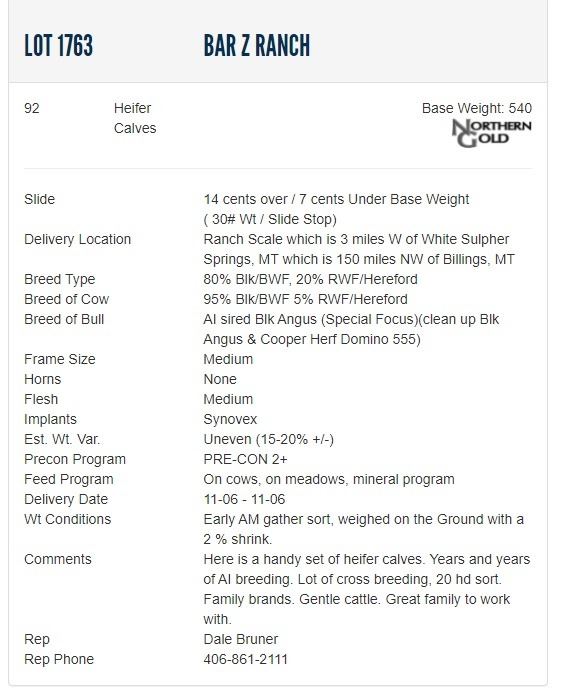 Delivery Location: Ranch Scalewhich is 3 miles W of White Sulpher Springs