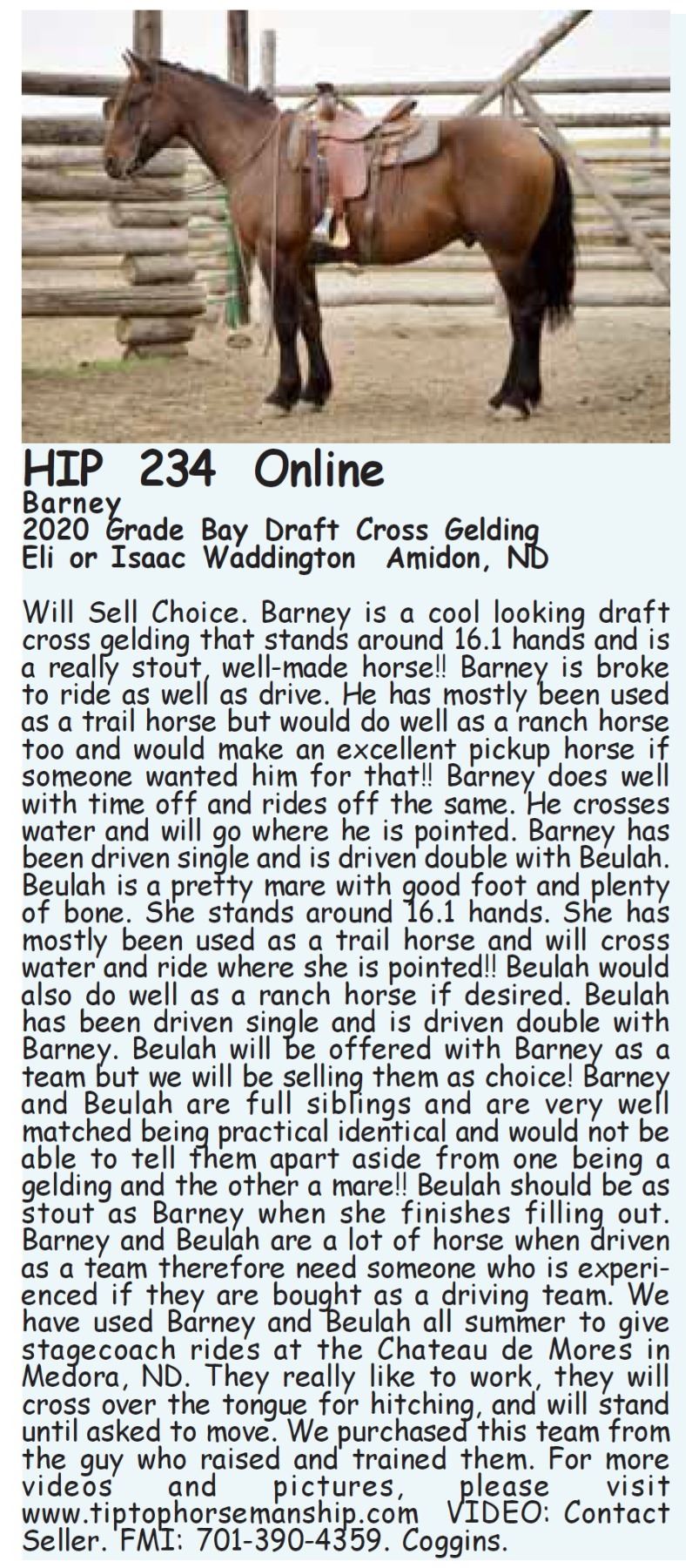 4. Horses are offered for sale according to the laws of the State of Montana, and the right to bid is reserved for all sellers in this sale.