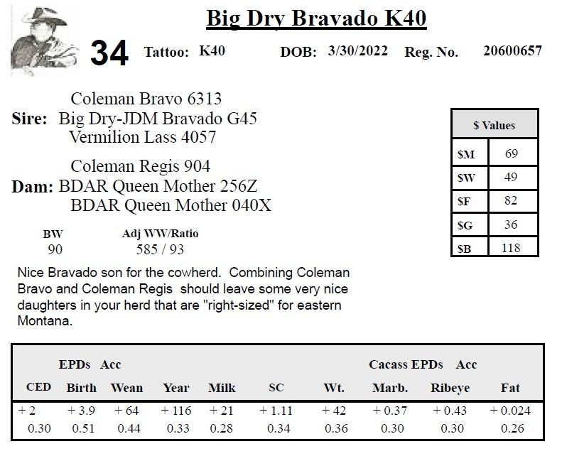 All persons who attend this sale do so at their own risk, legal or otherwise. Big Dry Angus assumes no liability for property loss or accident that may occur.