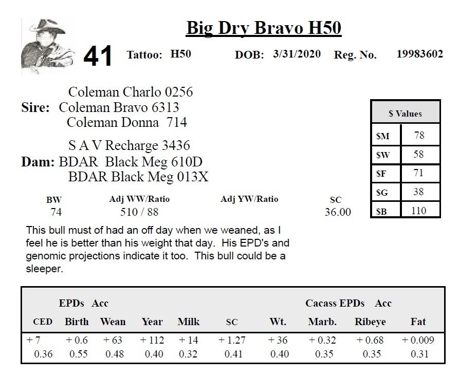 All persons who attend this sale do so at their own risk, legal or otherwise. Big Dry Angus assumes no liability for property loss or accident that may occur.