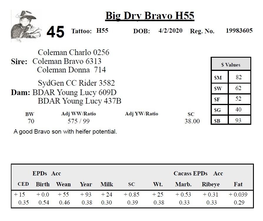 All persons who attend this sale do so at their own risk, legal or otherwise. Big Dry Angus assumes no liability for property loss or accident that may occur.