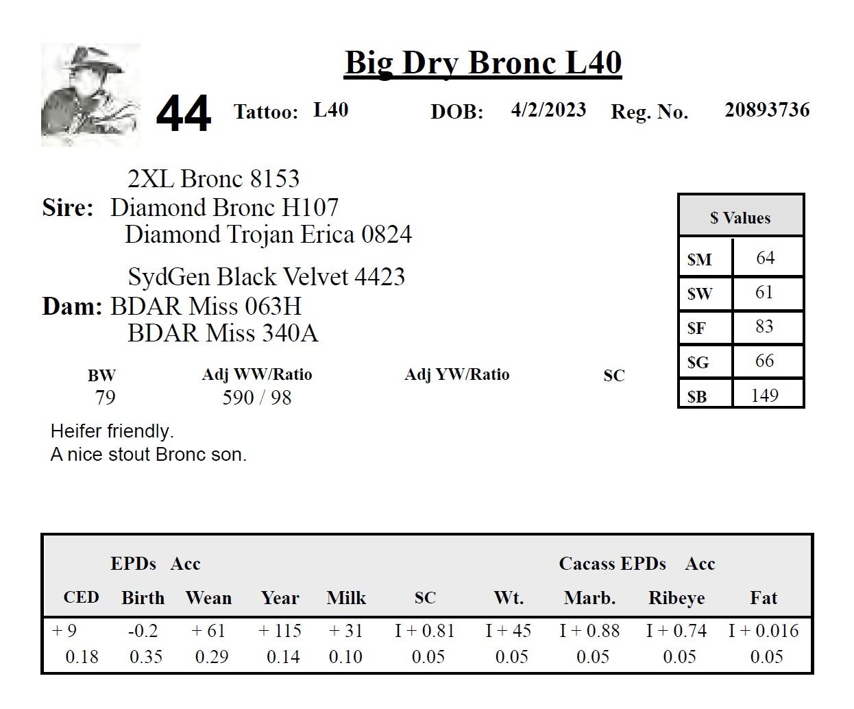 All persons who attend this sale do so at their own risk, legal or otherwise. Big Dry Angus assumes no liability for property loss or accident that may occur.