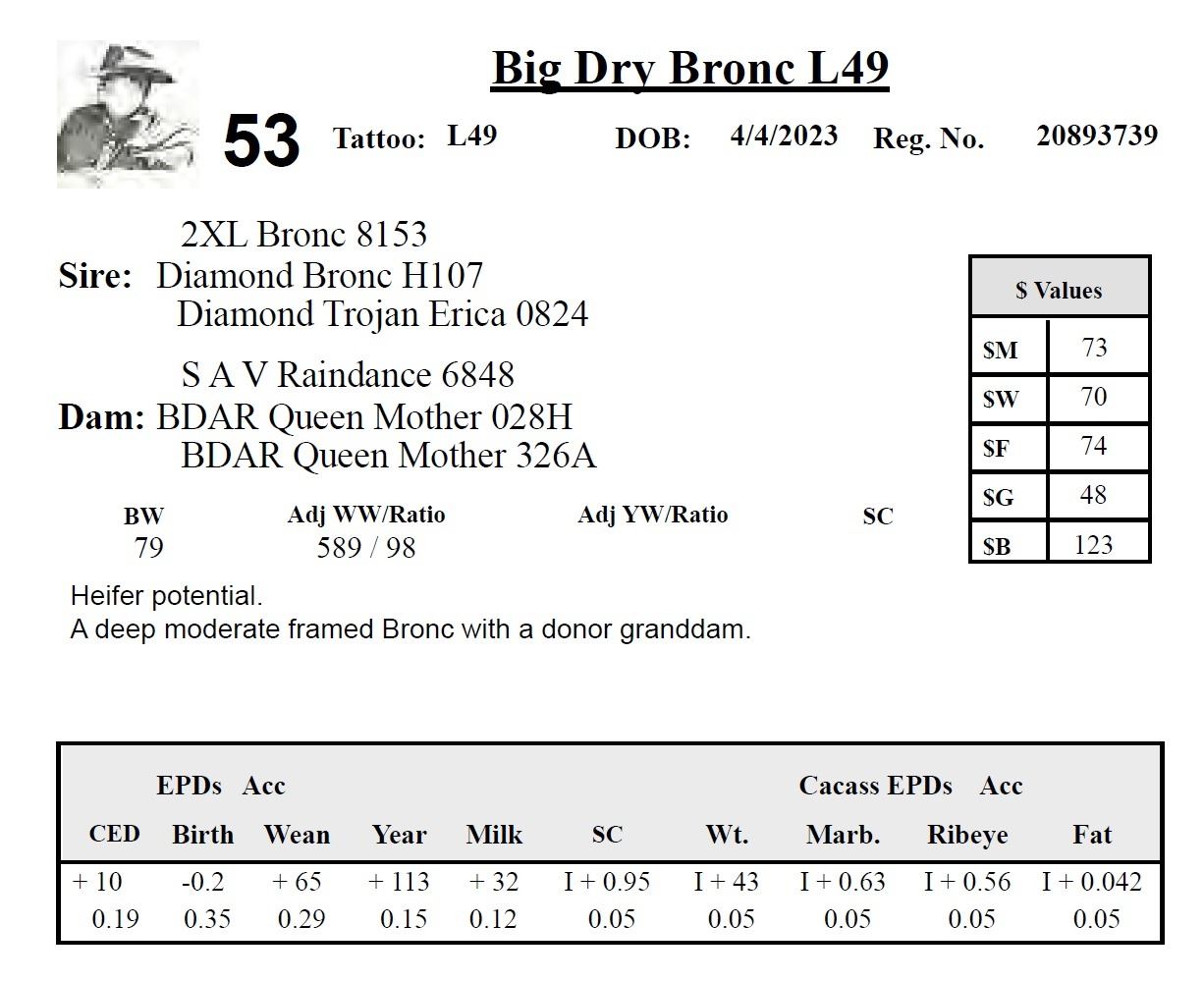 All persons who attend this sale do so at their own risk, legal or otherwise. Big Dry Angus assumes no liability for property loss or accident that may occur.