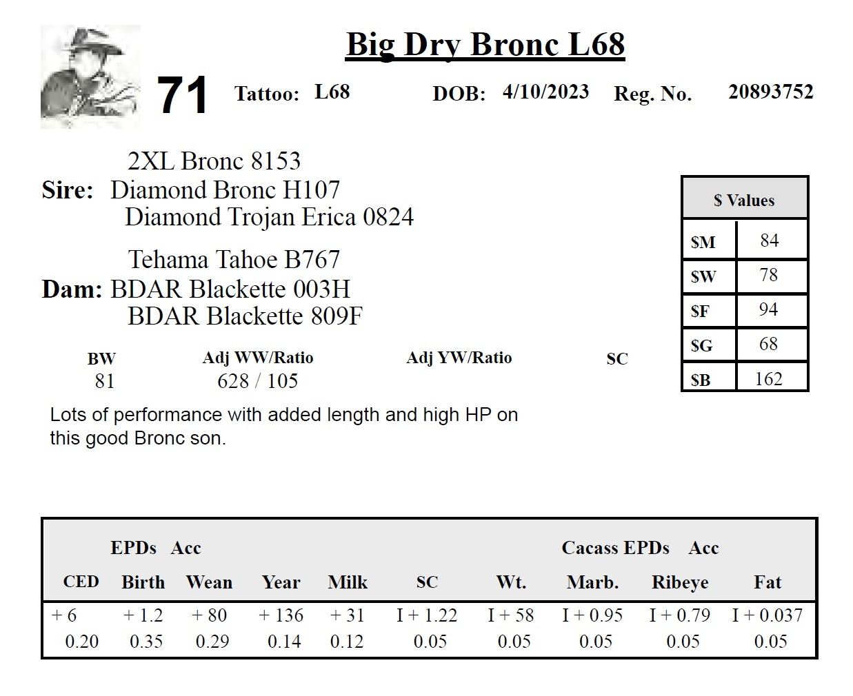 All persons who attend this sale do so at their own risk, legal or otherwise. Big Dry Angus assumes no liability for property loss or accident that may occur.