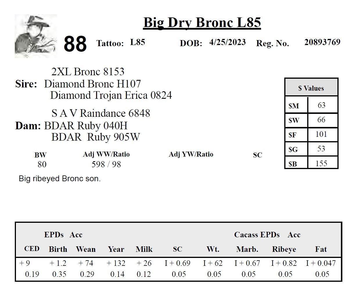 All persons who attend this sale do so at their own risk, legal or otherwise. Big Dry Angus assumes no liability for property loss or accident that may occur.