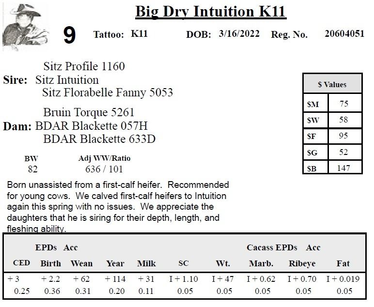 All persons who attend this sale do so at their own risk, legal or otherwise. Big Dry Angus assumes no liability for property loss or accident that may occur.