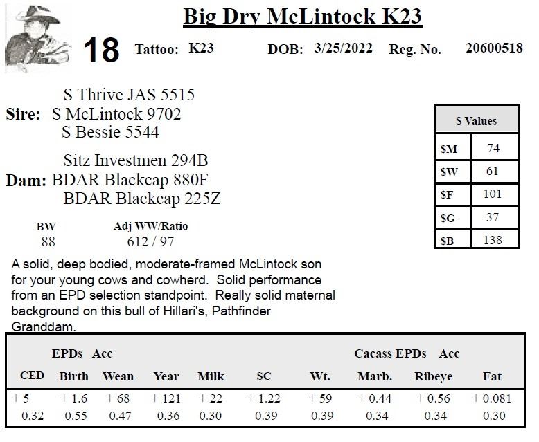 All persons who attend this sale do so at their own risk, legal or otherwise. Big Dry Angus assumes no liability for property loss or accident that may occur.