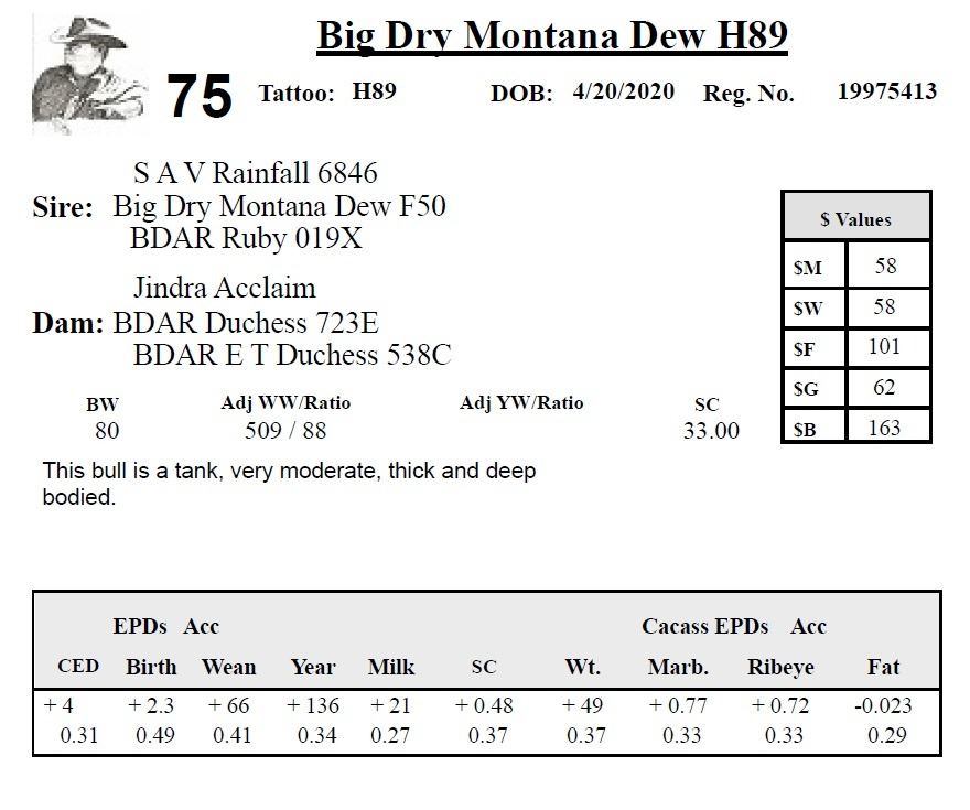 All persons who attend this sale do so at their own risk, legal or otherwise. Big Dry Angus assumes no liability for property loss or accident that may occur.