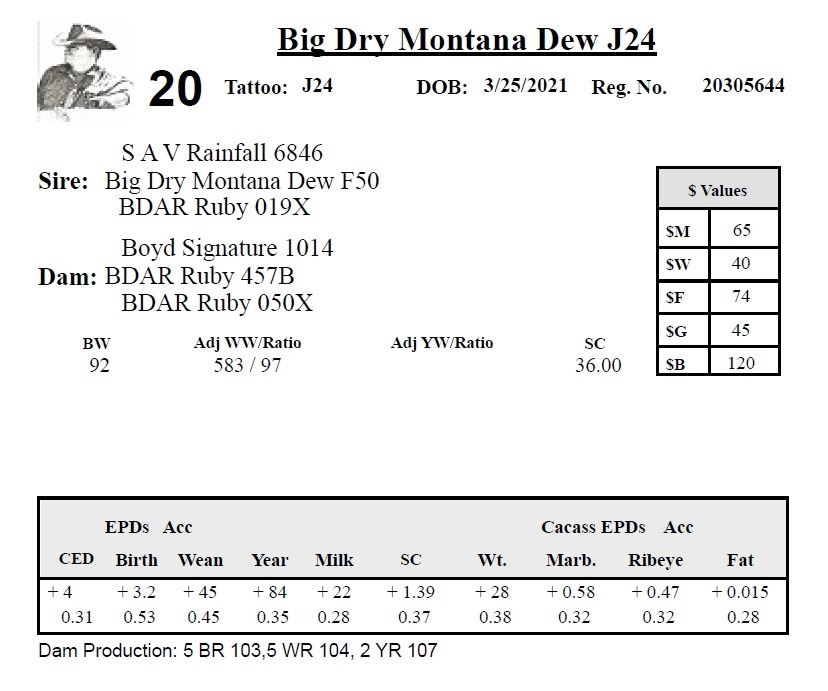 All persons who attend this sale do so at their own risk, legal or otherwise. Big Dry Angus assumes no liability for property loss or accident that may occur.