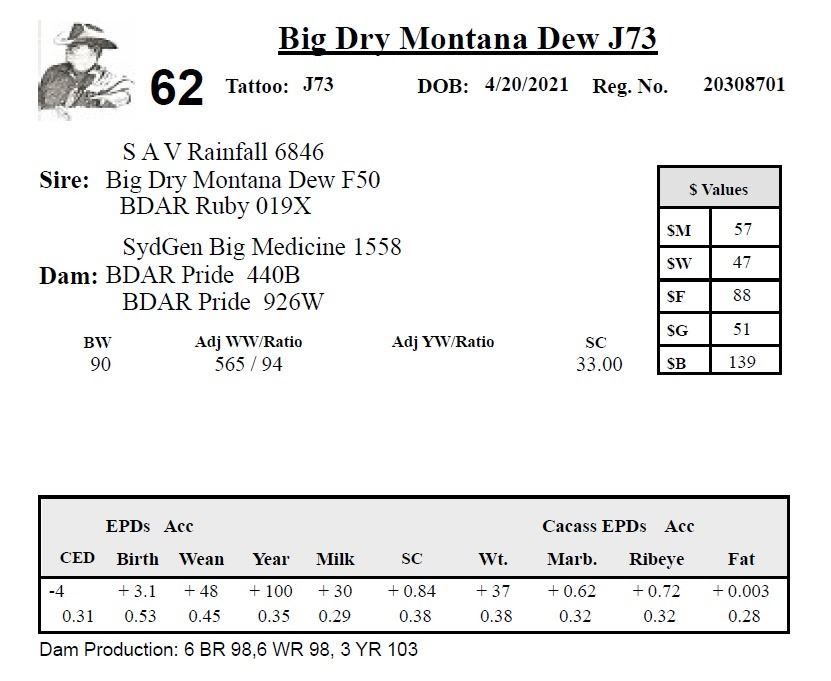 All persons who attend this sale do so at their own risk, legal or otherwise. Big Dry Angus assumes no liability for property loss or accident that may occur.