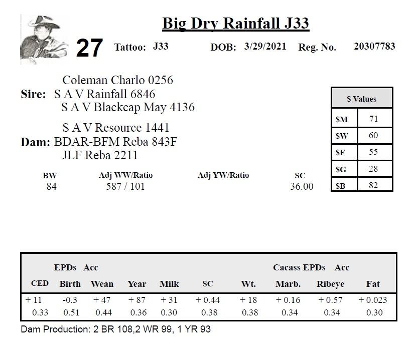 All persons who attend this sale do so at their own risk, legal or otherwise. Big Dry Angus assumes no liability for property loss or accident that may occur.