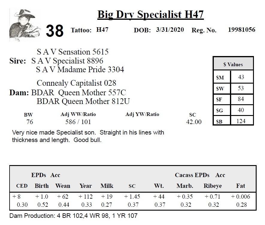 All persons who attend this sale do so at their own risk, legal or otherwise. Big Dry Angus assumes no liability for property loss or accident that may occur.