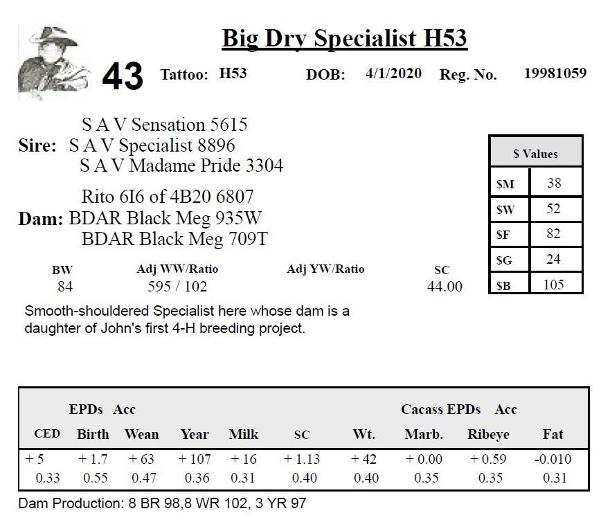 All persons who attend this sale do so at their own risk, legal or otherwise. Big Dry Angus assumes no liability for property loss or accident that may occur.