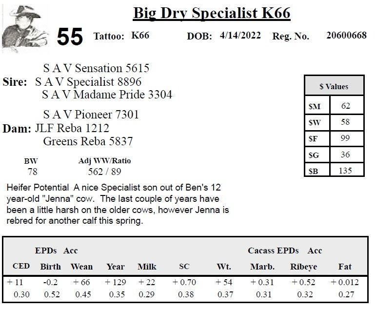 All persons who attend this sale do so at their own risk, legal or otherwise. Big Dry Angus assumes no liability for property loss or accident that may occur.