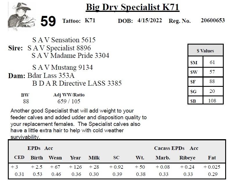 All persons who attend this sale do so at their own risk, legal or otherwise. Big Dry Angus assumes no liability for property loss or accident that may occur.