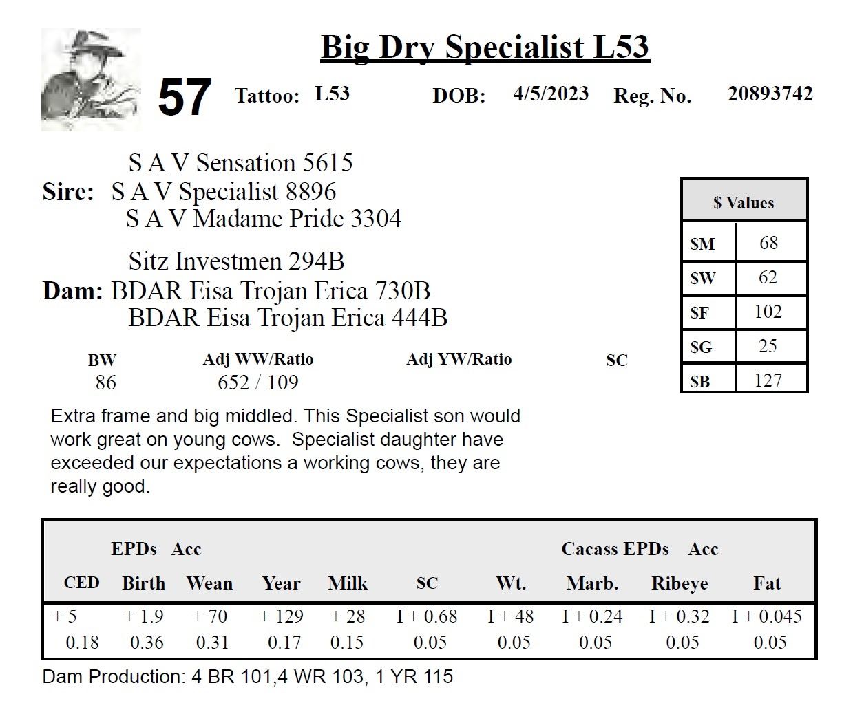 All persons who attend this sale do so at their own risk, legal or otherwise. Big Dry Angus assumes no liability for property loss or accident that may occur.