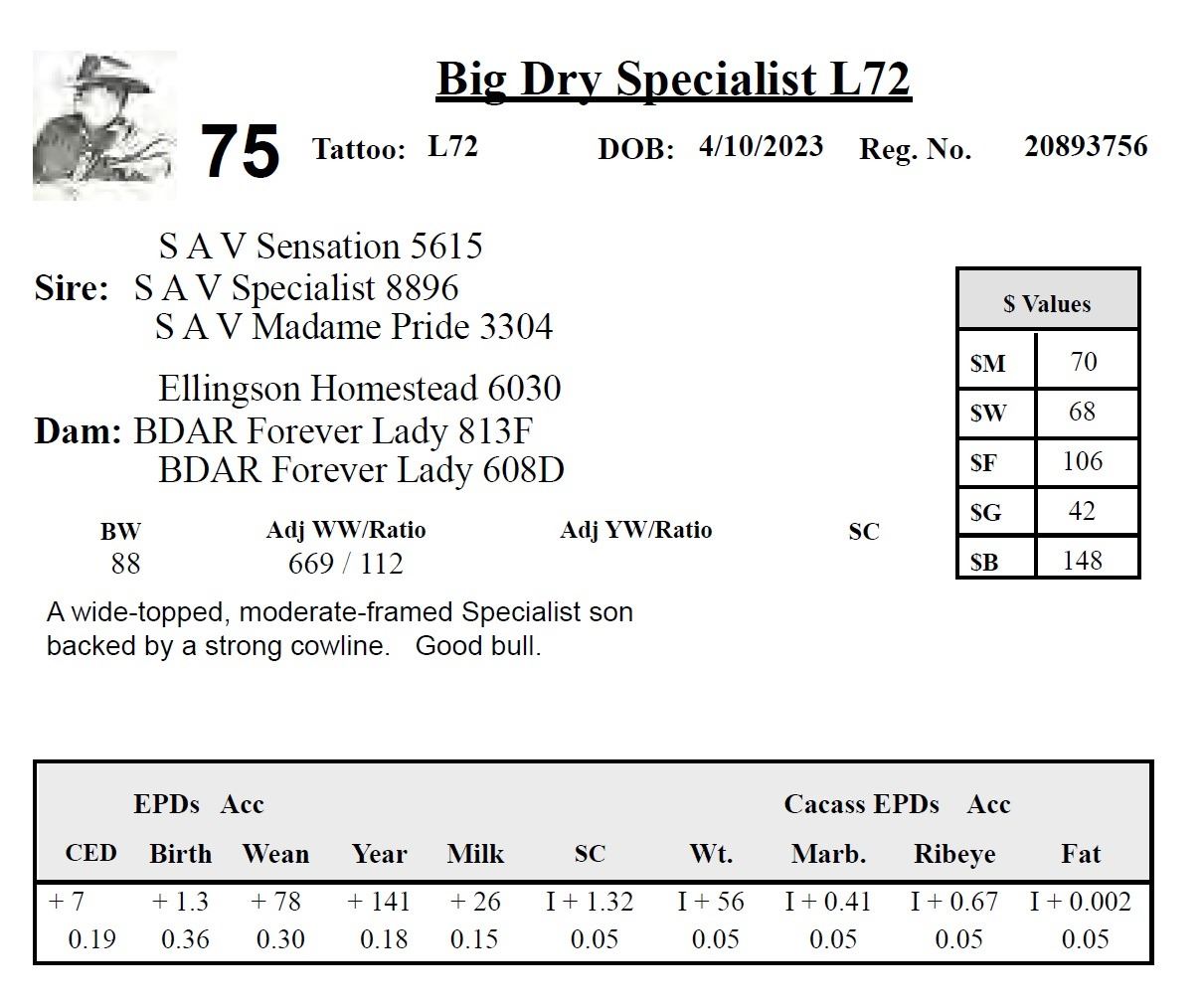 All persons who attend this sale do so at their own risk, legal or otherwise. Big Dry Angus assumes no liability for property loss or accident that may occur.