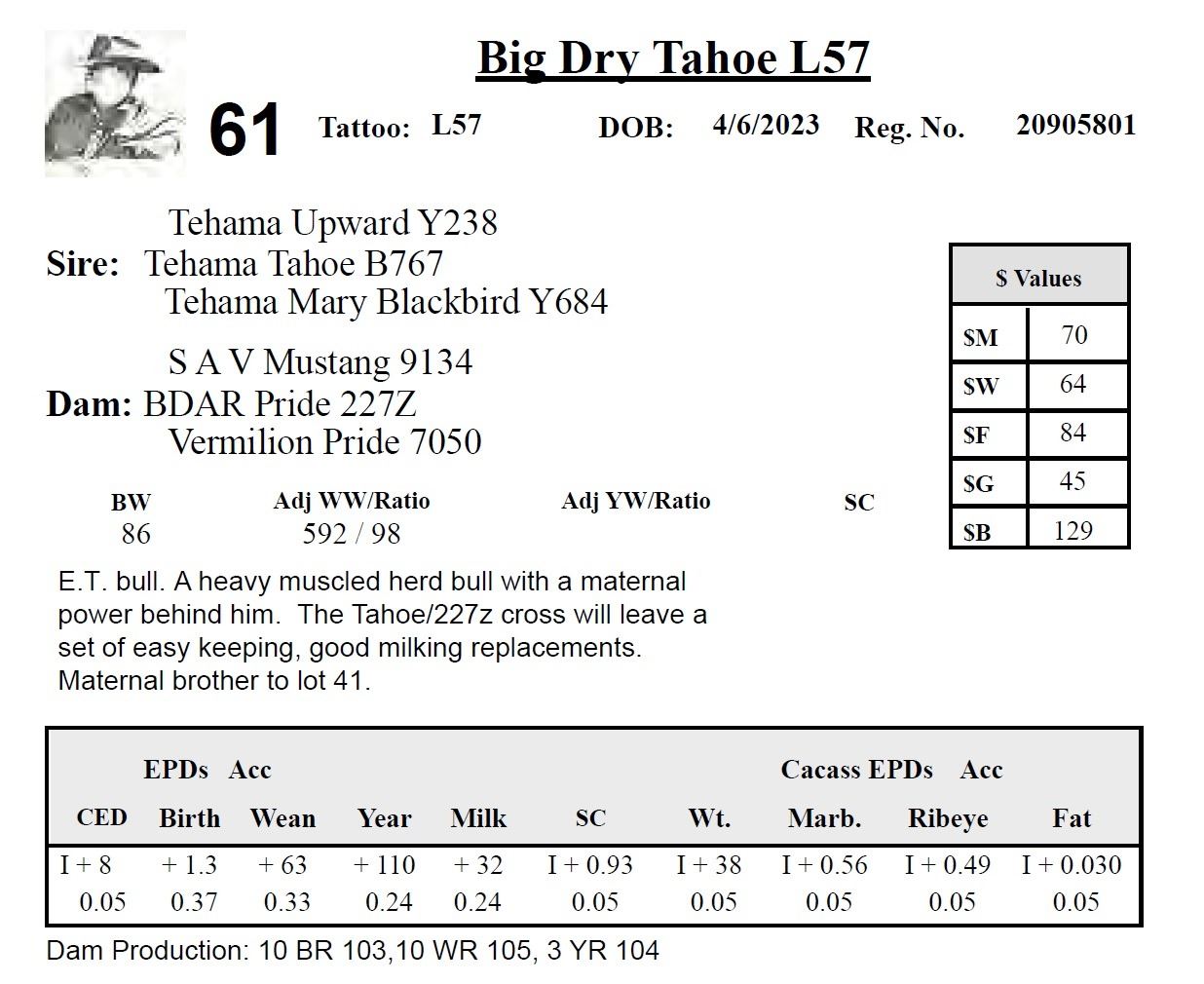All persons who attend this sale do so at their own risk, legal or otherwise. Big Dry Angus assumes no liability for property loss or accident that may occur.