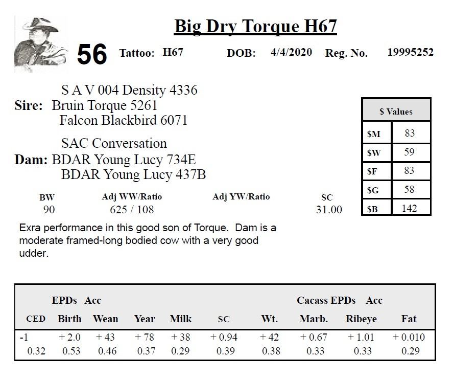 All persons who attend this sale do so at their own risk, legal or otherwise. Big Dry Angus assumes no liability for property loss or accident that may occur.