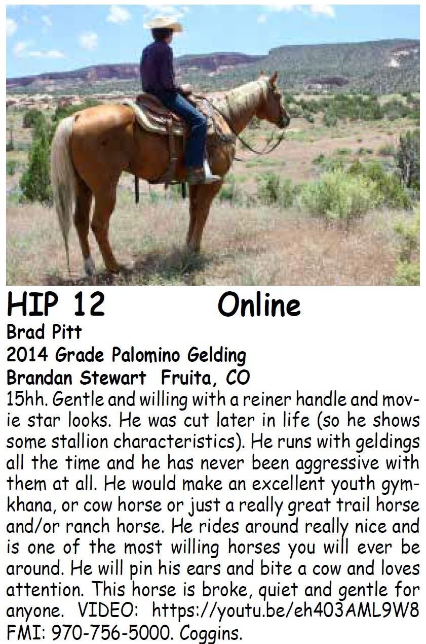 ALL AUGUST 26 SALE HORSES WILL BE AUCTIONED LIVE AT BILLINGS LIVESTOCK – Internet bidding also available for Online/ ShowCase Internet Sale Session horses offered in this sale