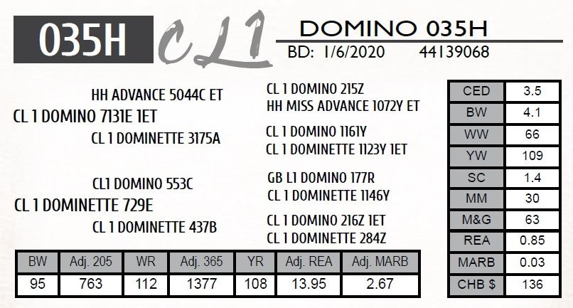 2nd highest actual weaning weight at 805 lbs. and 3rd highest yearling weight.