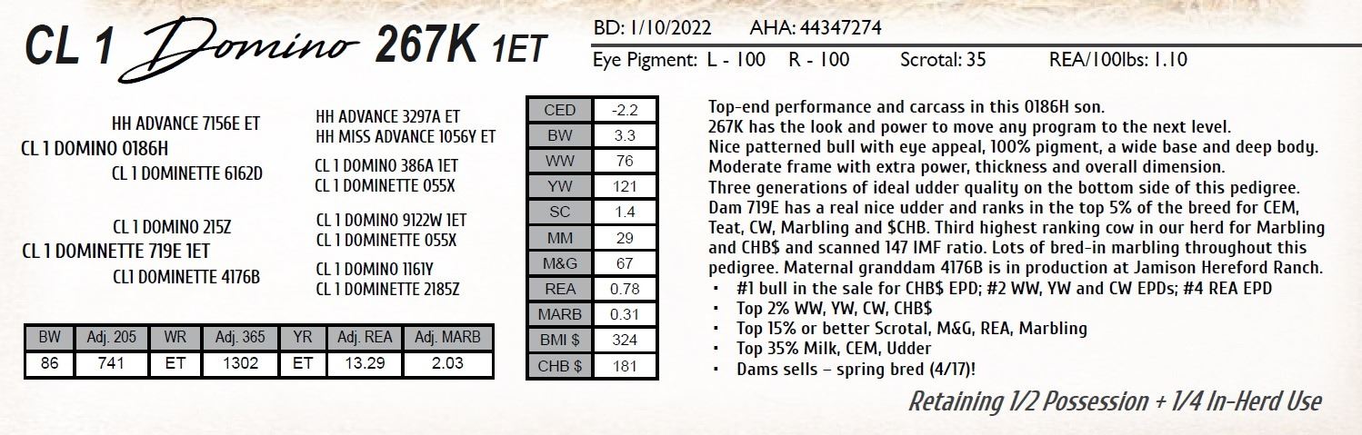 All persons who attend this sale do so at their own risk, legal or otherwise. Cooper Hereford Ranch assumes no liability for property loss or accident that may occur.