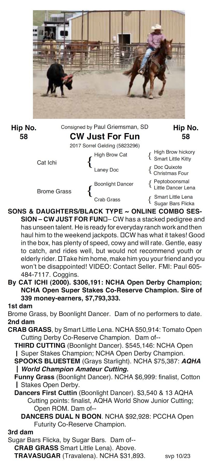 FRIDAY: OCTOBER 27 – HORSEPALACE ARENA Exit 437 on I-90 3 p.m. Indoor Performance Preview of Sale Horses! Barrels, Poles, Cutting, Saddle/Ride/Reiners, Rope Horses