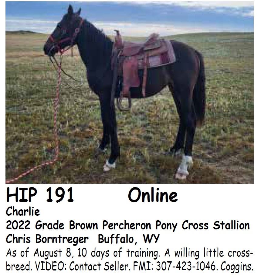 ALL AUGUST 26 SALE HORSES WILL BE AUCTIONED LIVE AT BILLINGS LIVESTOCK – Internet bidding also available for Online/ ShowCase Internet Sale Session horses offered in this sale
