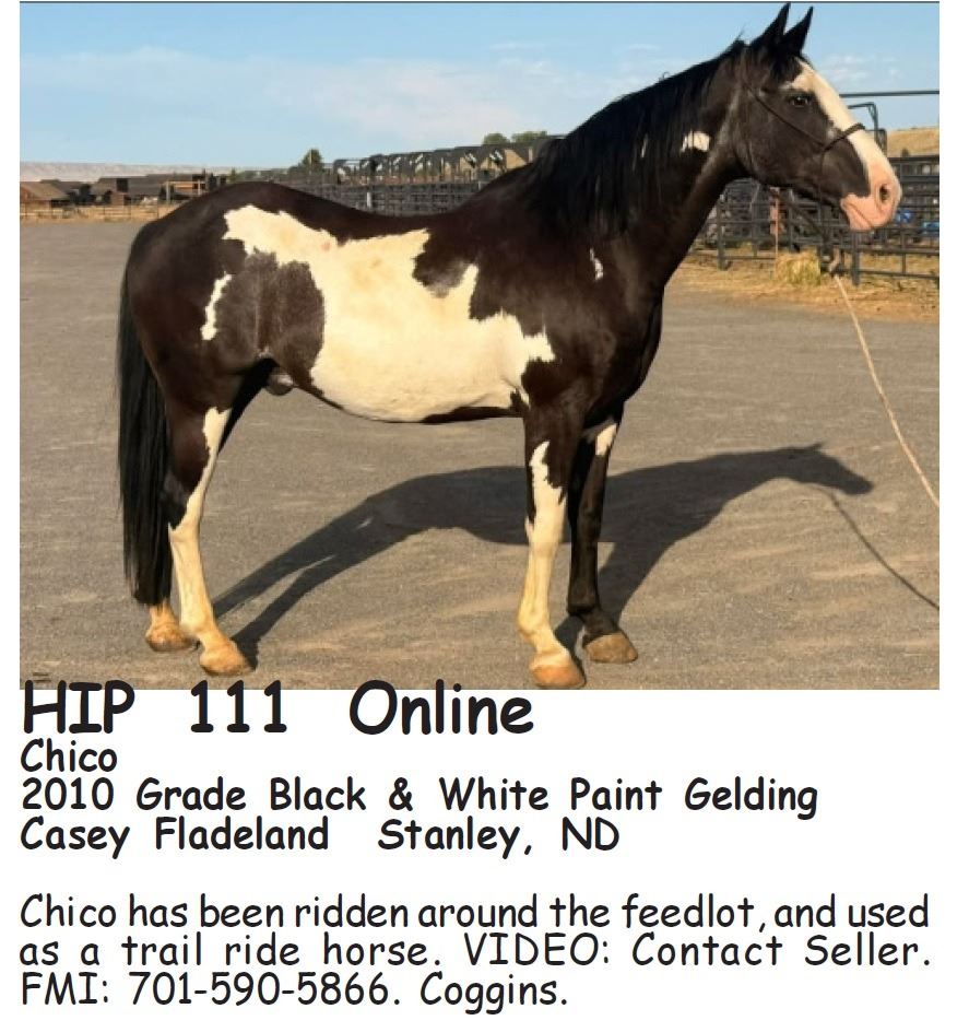 Chico has been ridden around the feedlot, and used as a trail ride horse. VIDEO: Contact Seller. FMI: 701-590-5866. Coggins.