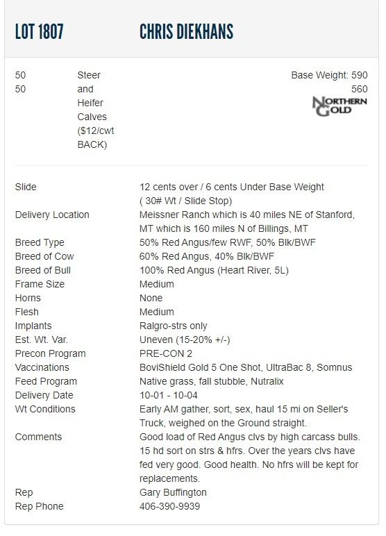 Comments Good load of Red Angus clvs by high carcass bulls. 15 hd sort on strs & hfrs. Over the years clvs have fed very good. Good health. No hfrs will be kept for replacements.