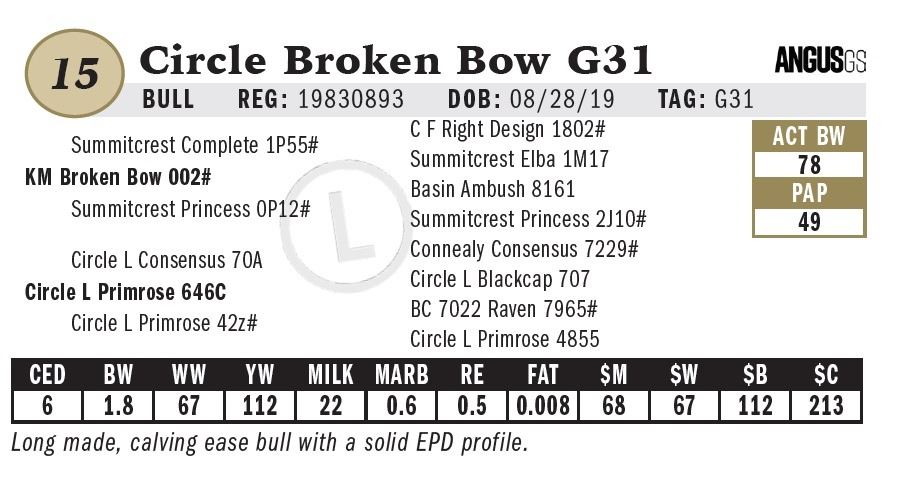 All persons who attend this sale do so at their own risk, legal or otherwise. Circle L Angus assumes no liability for property loss or accident that may occur.