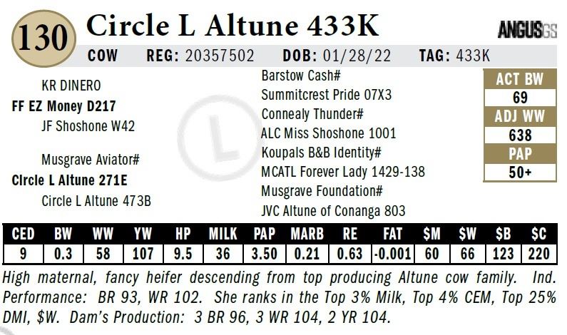 All persons who attend this sale do so at their own risk, legal or otherwise. Circle L Angus assumes no liability for property loss or accident that may occur.