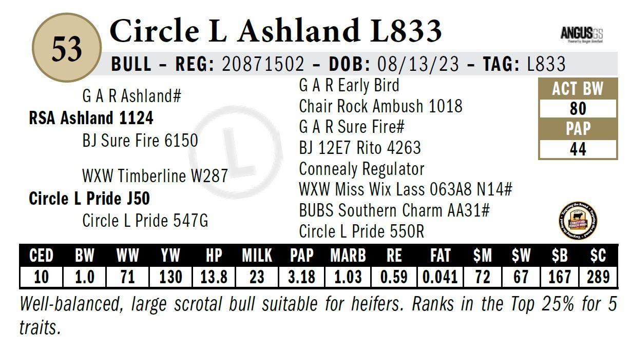 All persons who attend this sale do so at their own risk, legal or otherwise. Circle L Angus assumes no liability for property loss or accident that may occur.
