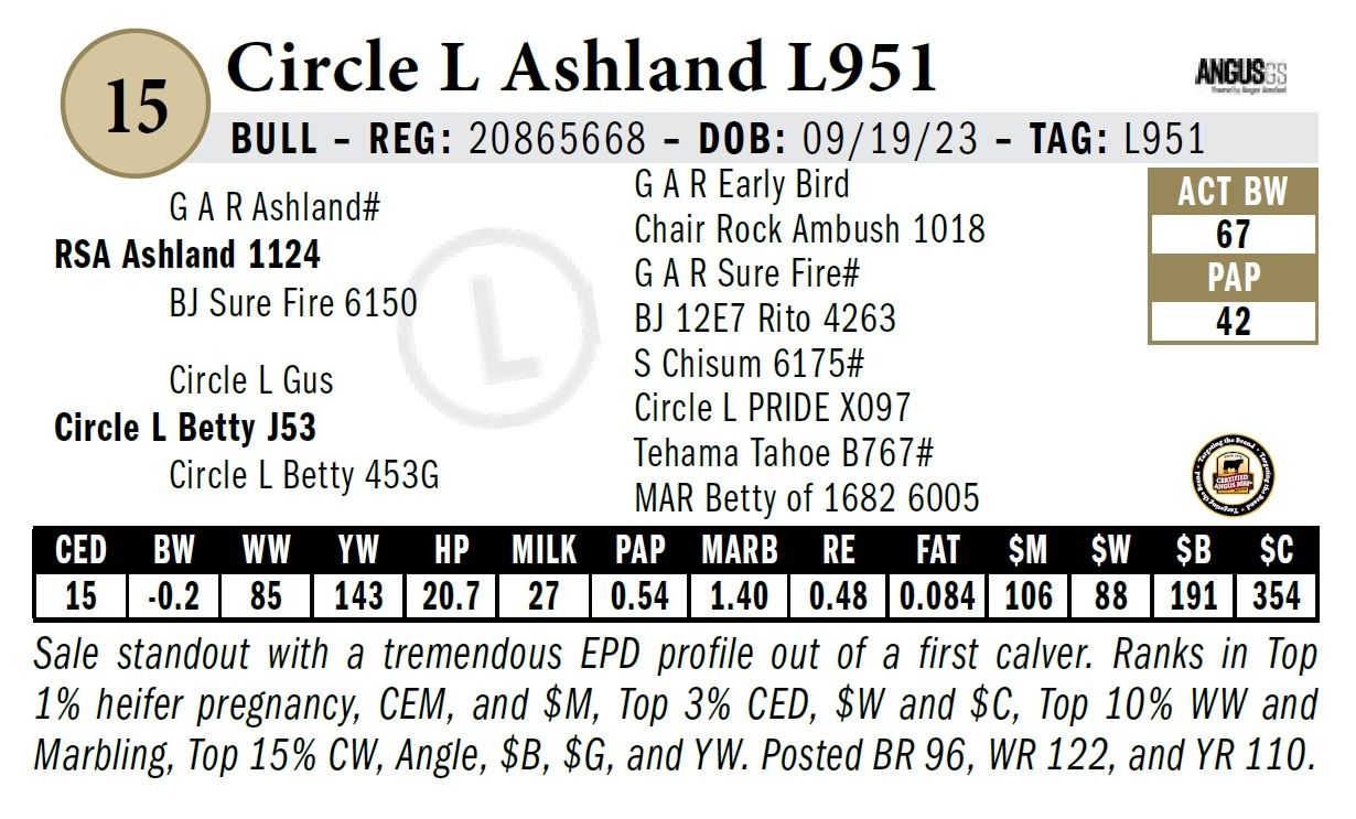 All persons who attend this sale do so at their own risk, legal or otherwise. Circle L Angus assumes no liability for property loss or accident that may occur.