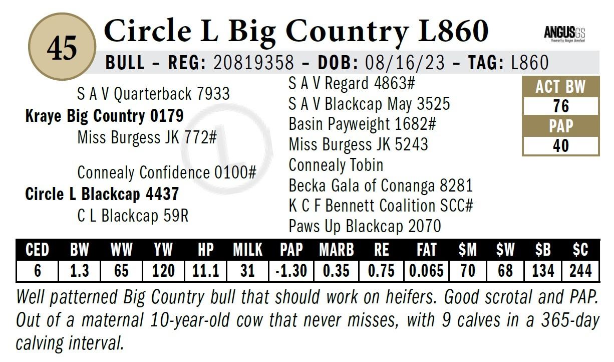 All persons who attend this sale do so at their own risk, legal or otherwise. Circle L Angus assumes no liability for property loss or accident that may occur.