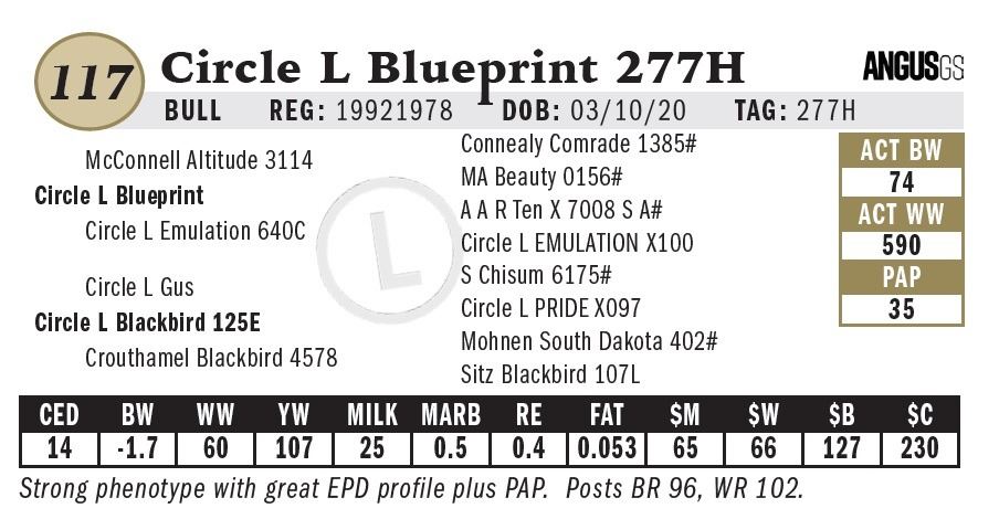 Strong phenotype with great EPD profile plus PAP. Posts BR 96, WR 102.