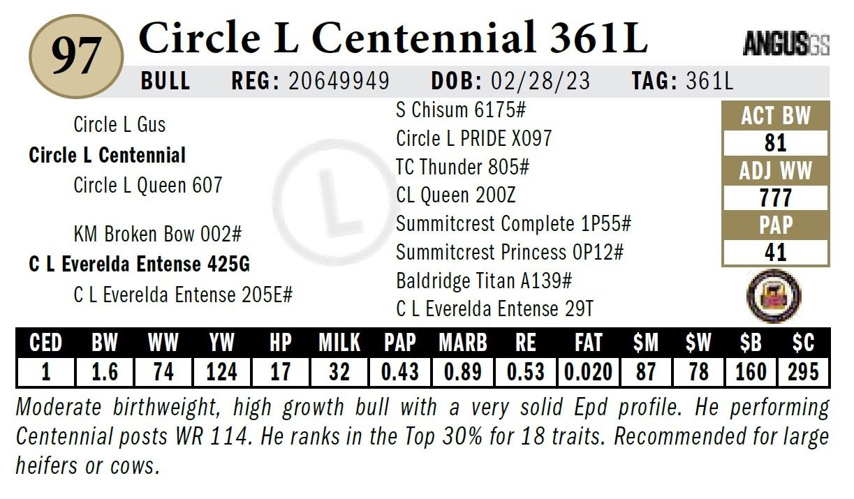 All persons who attend this sale do so at their own risk, legal or otherwise. Circle L Angus assumes no liability for property loss or accident that may occur.