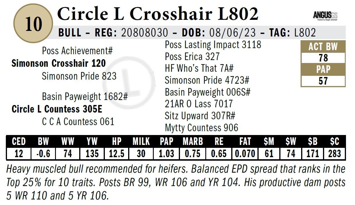 All persons who attend this sale do so at their own risk, legal or otherwise. Circle L Angus assumes no liability for property loss or accident that may occur.