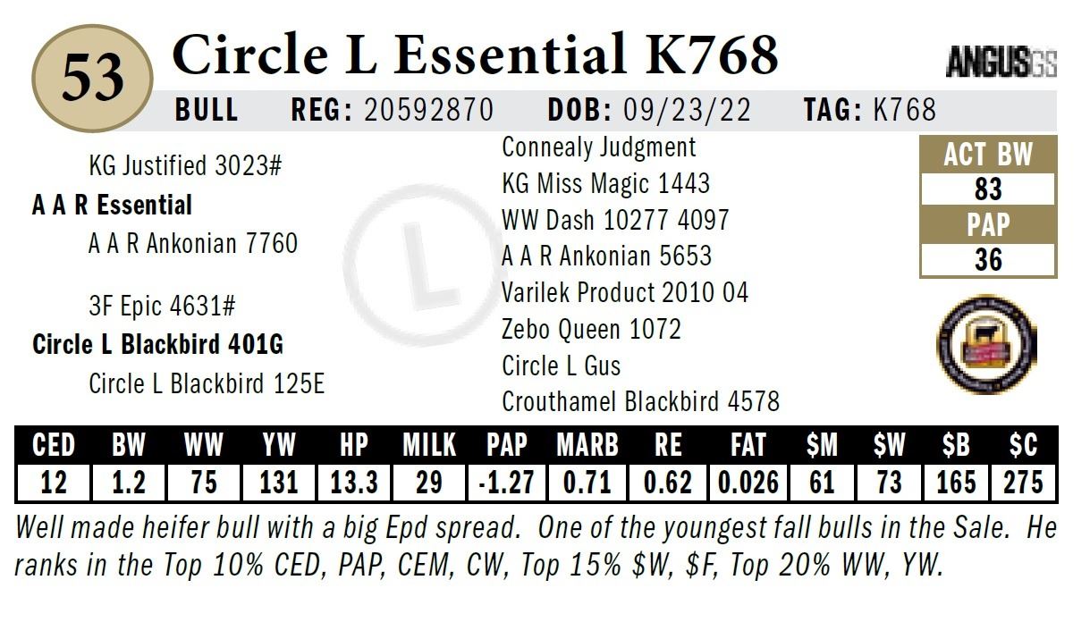 All persons who attend this sale do so at their own risk, legal or otherwise. Circle L Angus assumes no liability for property loss or accident that may occur.
