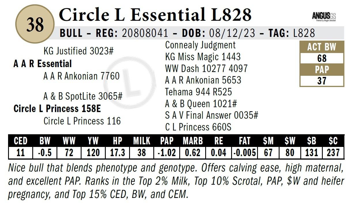 All persons who attend this sale do so at their own risk, legal or otherwise. Circle L Angus assumes no liability for property loss or accident that may occur.