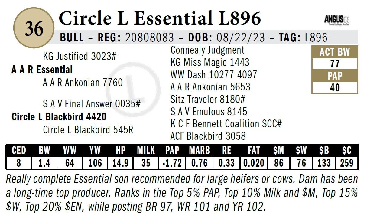 All persons who attend this sale do so at their own risk, legal or otherwise. Circle L Angus assumes no liability for property loss or accident that may occur.