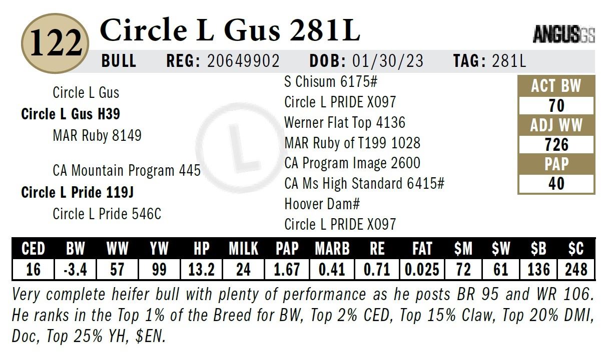 All persons who attend this sale do so at their own risk, legal or otherwise. Circle L Angus assumes no liability for property loss or accident that may occur.