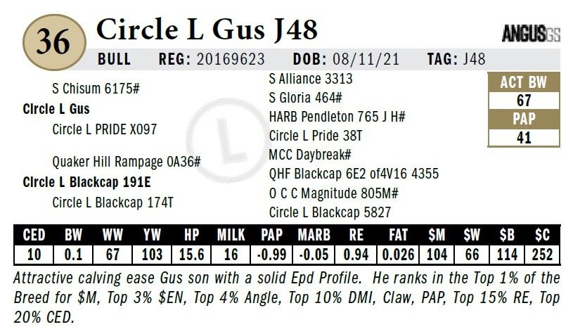 All persons who attend this sale do so at their own risk, legal or otherwise. Circle L Angus assumes no liability for property loss or accident that may occur.