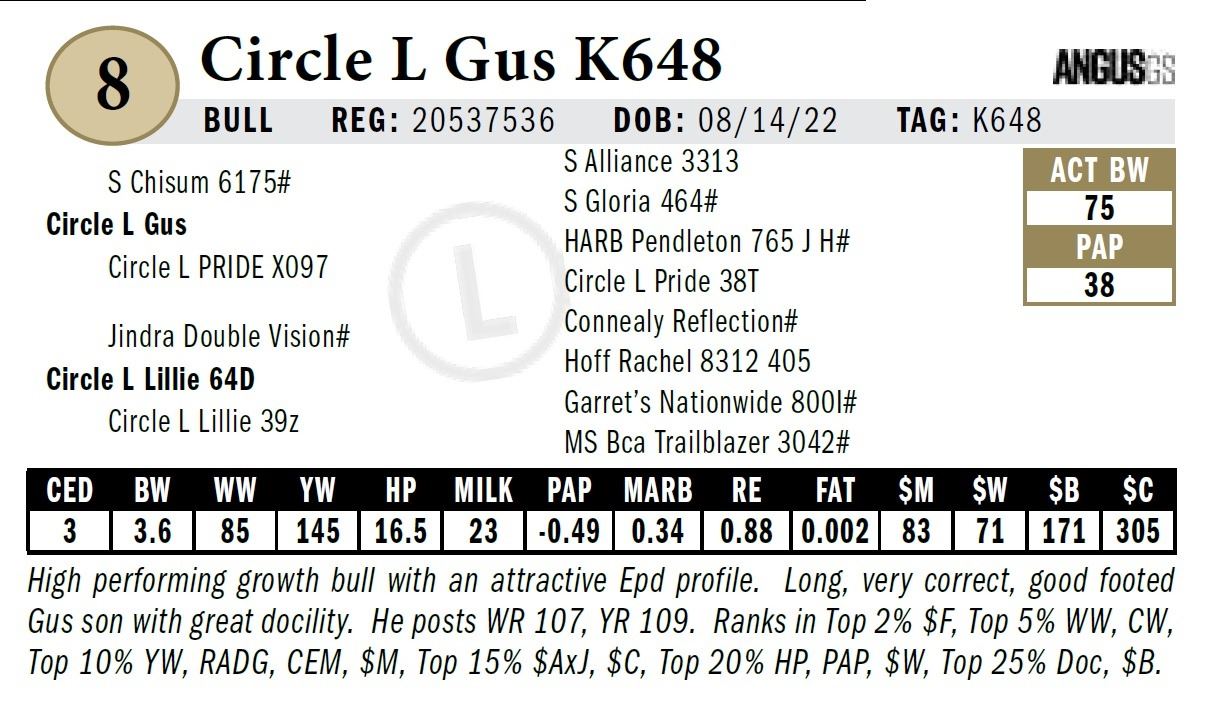 All persons who attend this sale do so at their own risk, legal or otherwise. Circle L Angus assumes no liability for property loss or accident that may occur.