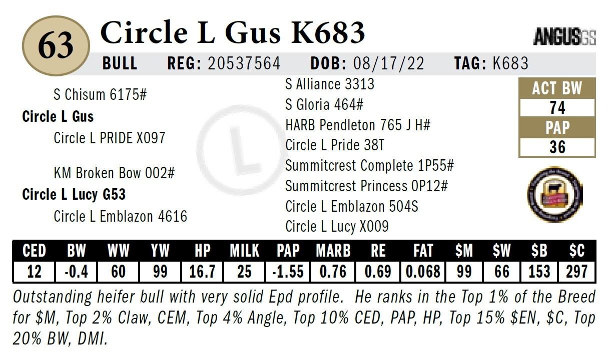All persons who attend this sale do so at their own risk, legal or otherwise. Circle L Angus assumes no liability for property loss or accident that may occur.