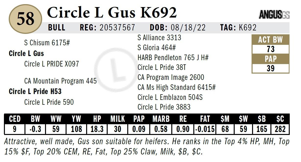 All persons who attend this sale do so at their own risk, legal or otherwise. Circle L Angus assumes no liability for property loss or accident that may occur.