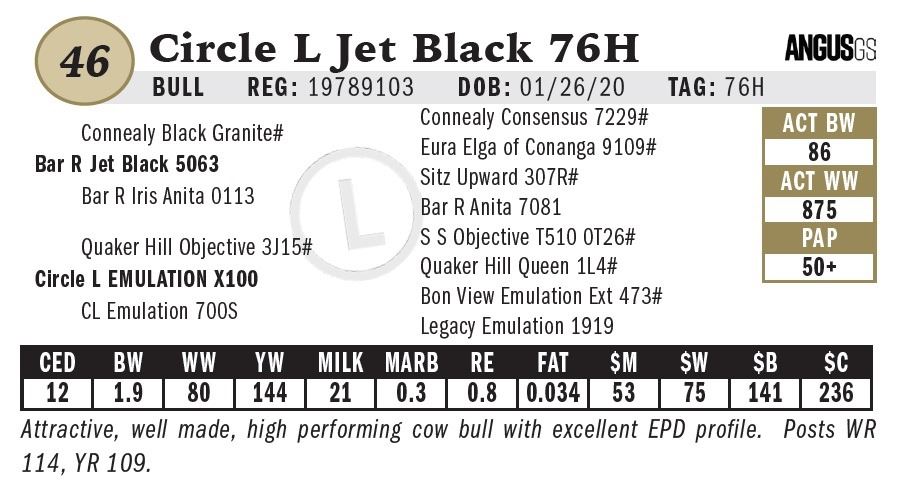All persons who attend this sale do so at their own risk, legal or otherwise. Circle L Angus assumes no liability for property loss or accident that may occur.