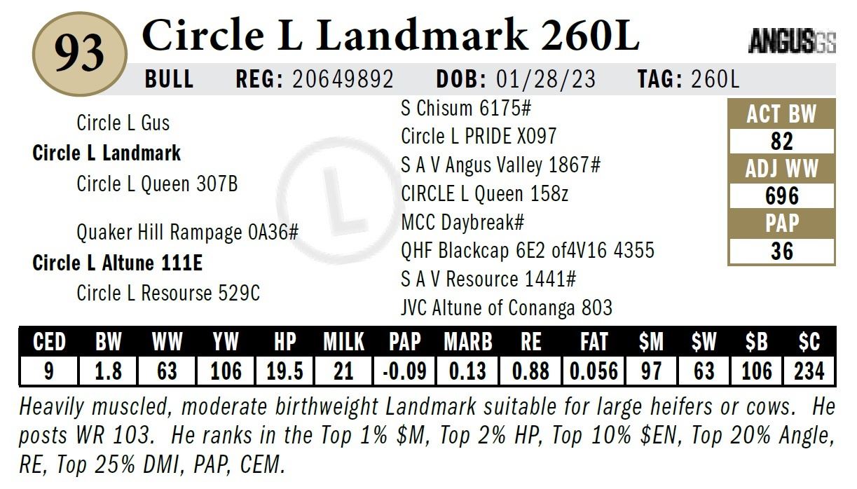 All persons who attend this sale do so at their own risk, legal or otherwise. Circle L Angus assumes no liability for property loss or accident that may occur.
