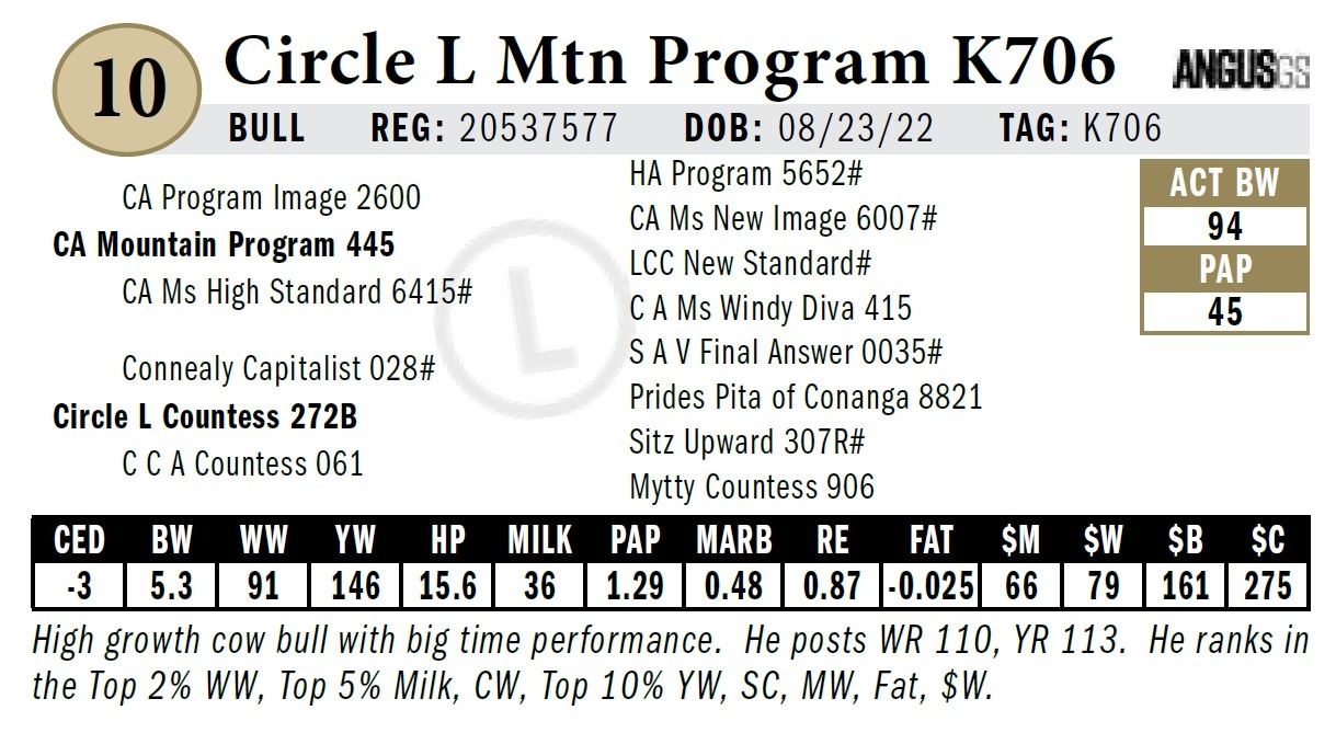 All persons who attend this sale do so at their own risk, legal or otherwise. Circle L Angus assumes no liability for property loss or accident that may occur.